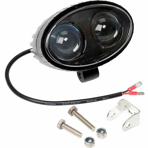 Twin 5 watt solid-state, shock-resistant, Cree LED (Light Emitting Diode) lights yielding 600 lumens are enclosed in an IP68 rated housing with a UV-resistant PMMA polycarbonate lens. The safety light uses the vehicle electrical power to operate and can be installed on the front and/or rear of any forklift, sweeper, AGV or industrial vehicle (configured for 10 Volt to 80 Volt DC input range, with reverse voltage protection). The 50,000 hour service life LED’s are mounted in a rugged die-cast aluminum housing for long life. Working environment temperature is -49 to 185° F. Universal stainless steel swivel mounting bracket allows for easy installation. 1 Year Limited Warranty.