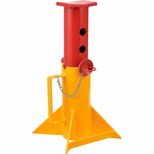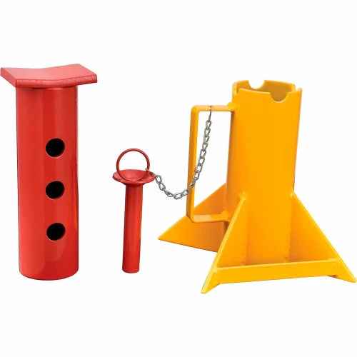Jack Stands are designed to hold your fork lift truck in the raised position when performing repairs and maintenance. Includes two Jack Stands with heat-treated holding pins for easy height adjustability. Heavy duty steel construction features a wide base design for stability. 1 Year Limited Warranty.
